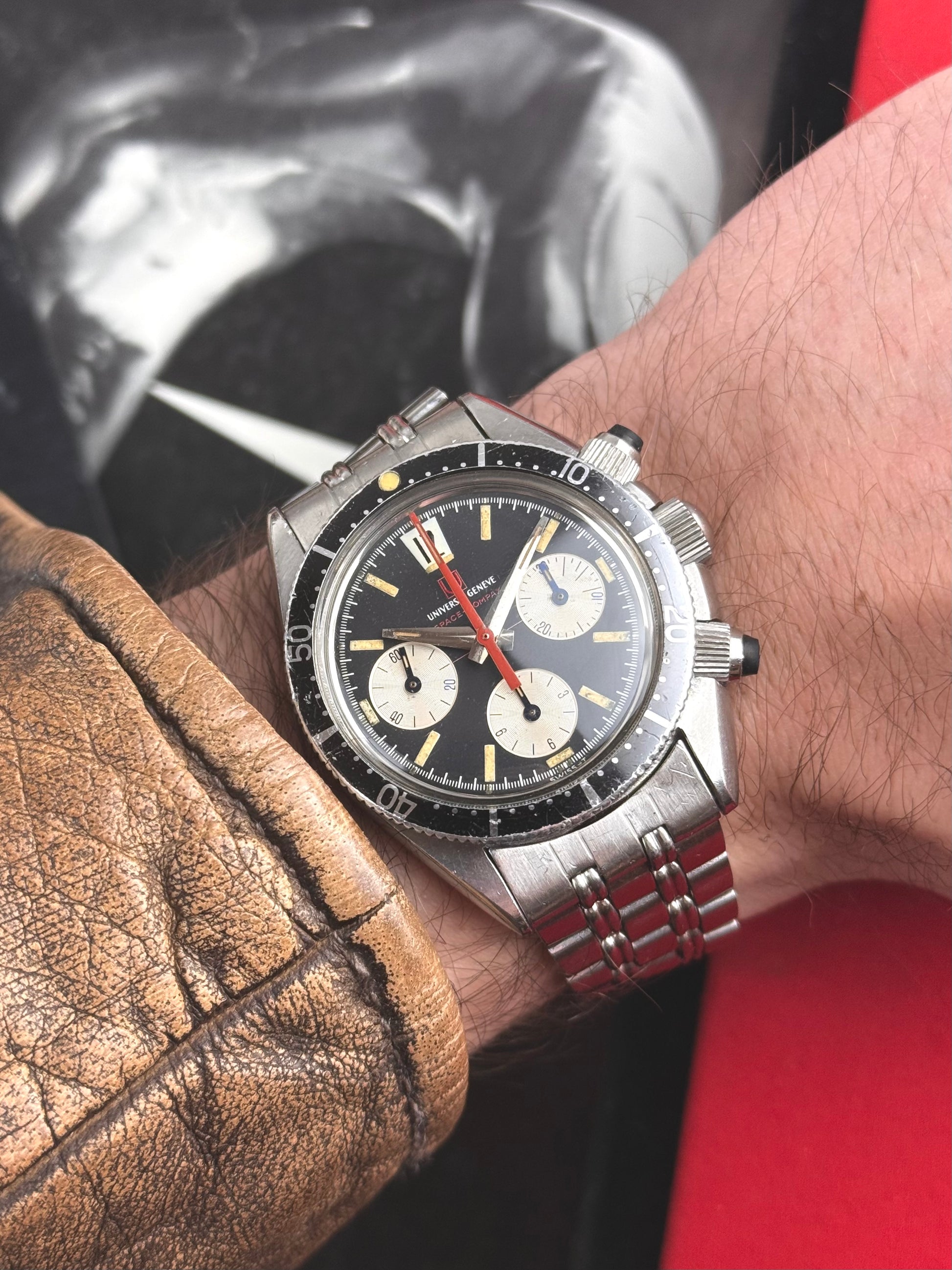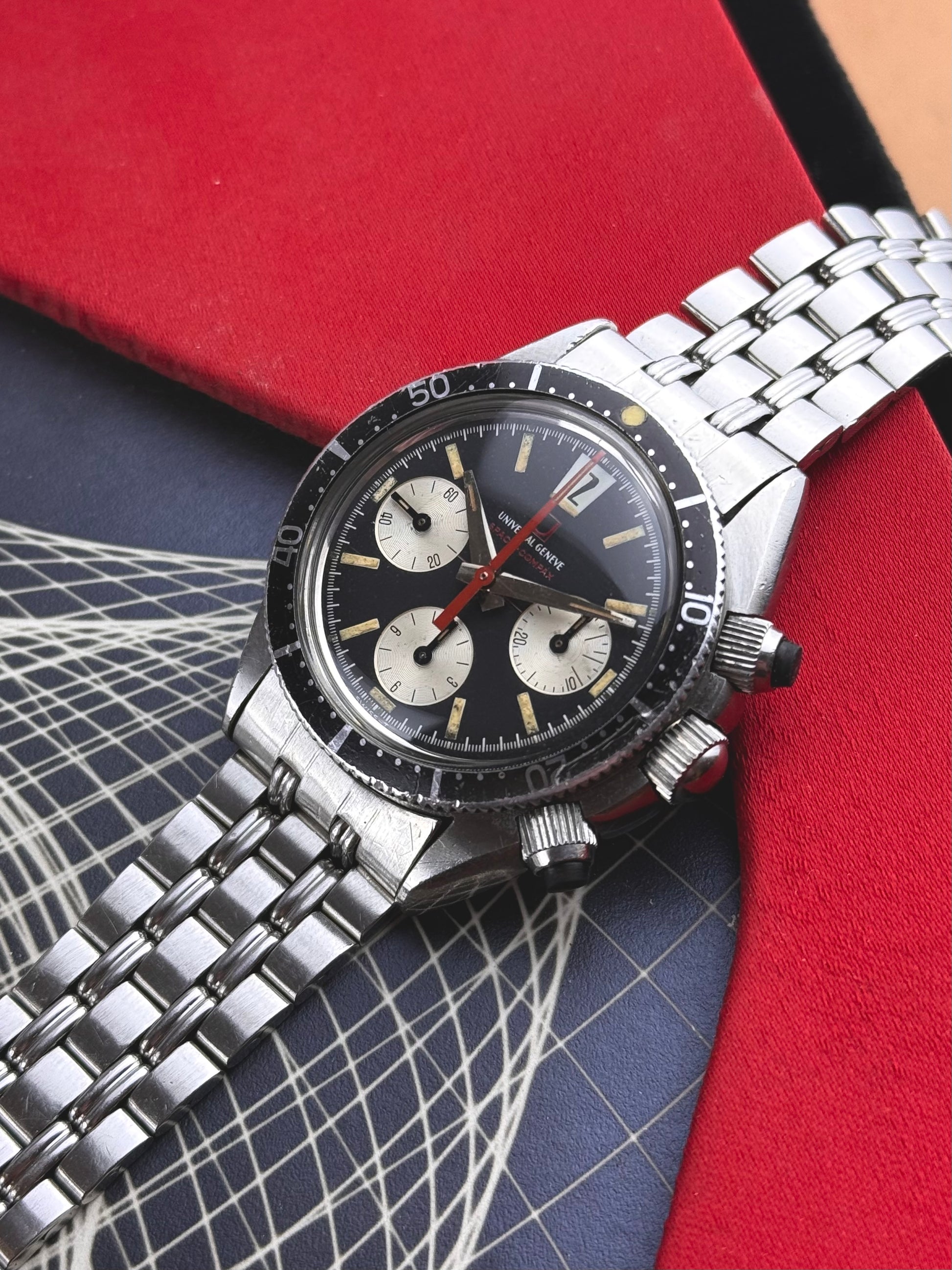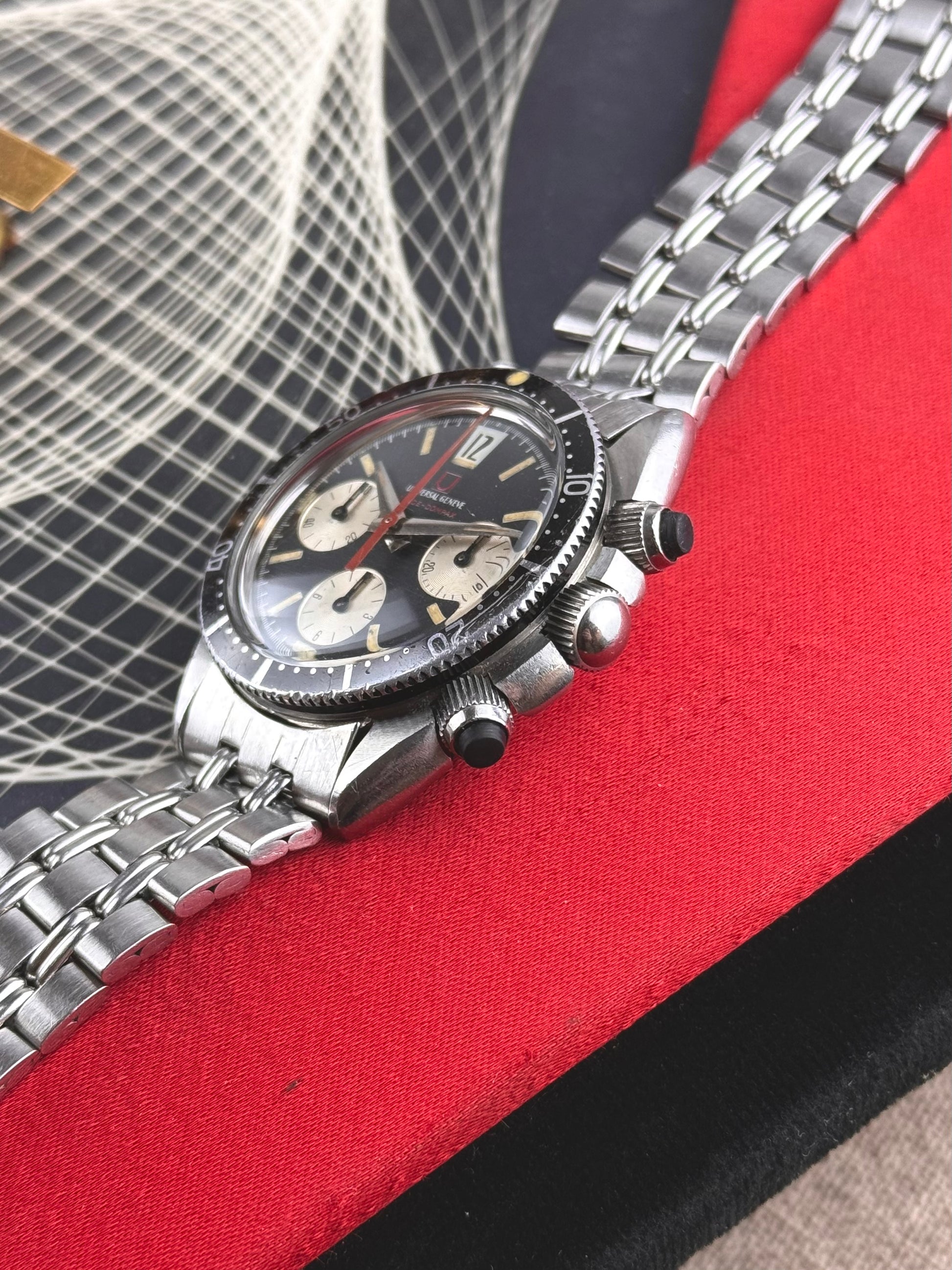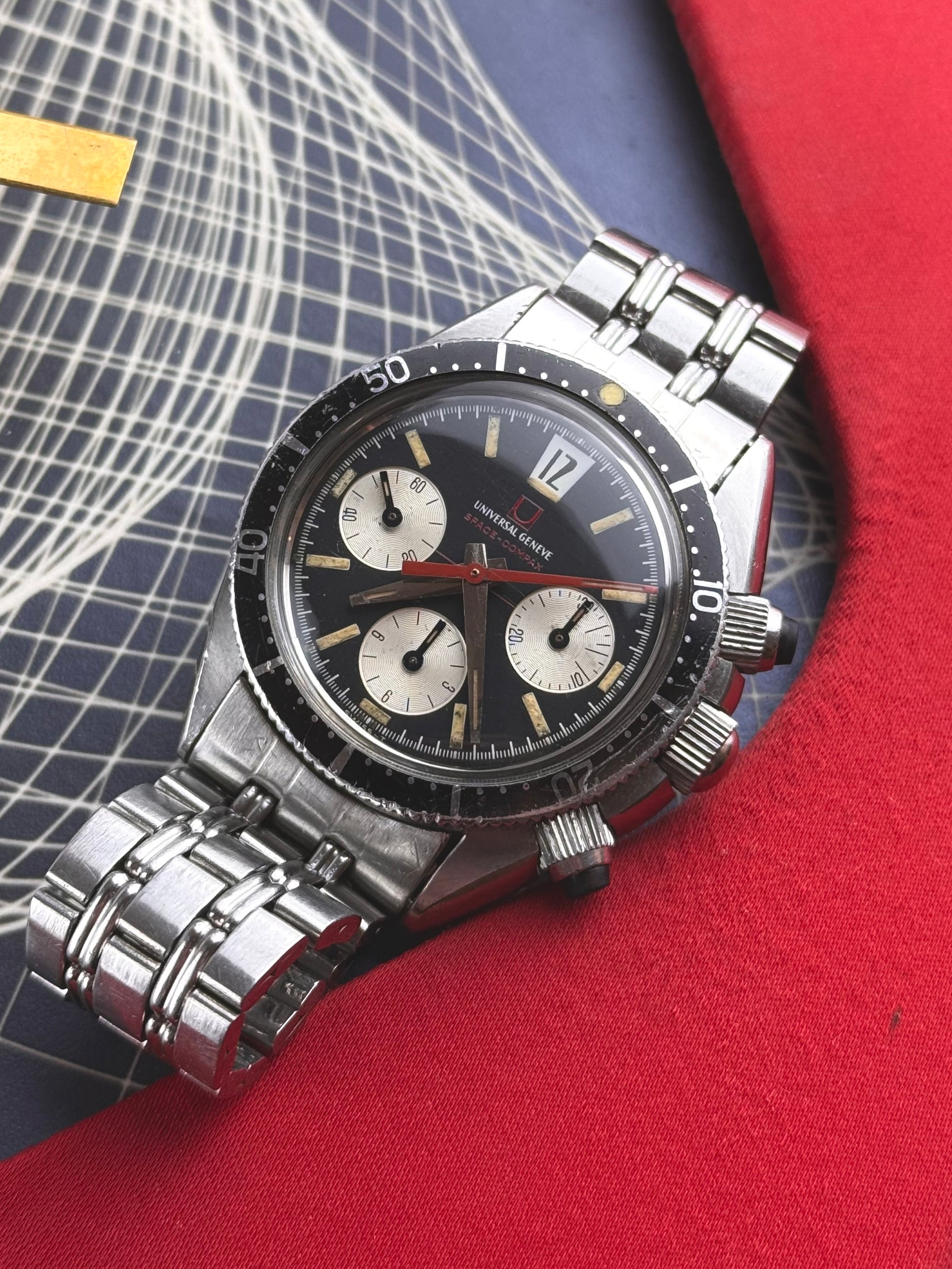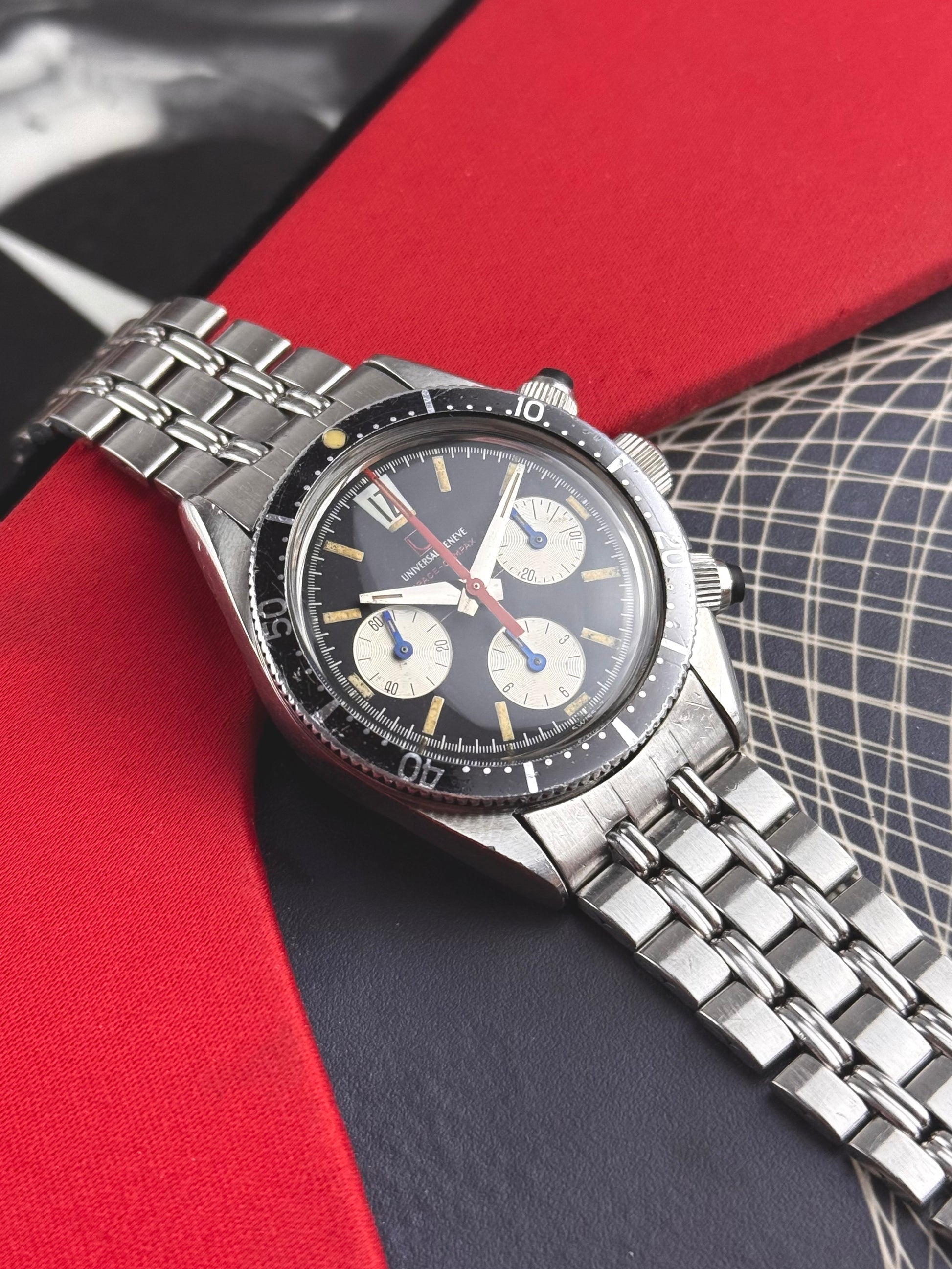 La Universal Genève 885104/01, plus connue sous le nom de Space-Compax, est un chronographe emblématique de la fin des années 1960 qui incarne parfaitement l’esthétique audacieuse et expérimentale de l’ère spatiale.